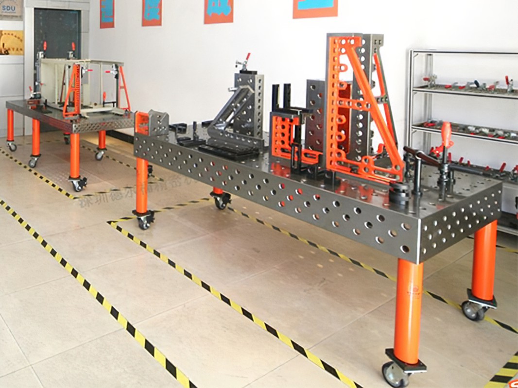 4、重復性:臺面有鑄鐵/鋼結構件/精密加工件/模塊化組件組合而成,其性能非常穩定,如使用不當造成部件損壞時,也不用報廢整張臺,只要非常少的成本可以 換單個部件。焊接平臺經過特殊加工處理,在焊接過程中,僅需低廉的防飛濺液即可免除工作臺表面的焊接飛濺。