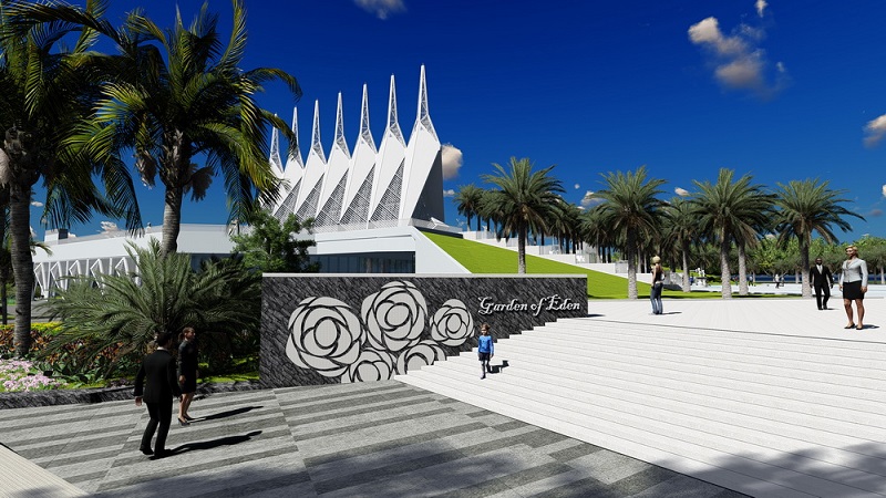 伊甸園婚慶主題廣場位于晉非*立開發區*北端,總用地面積24800㎡,北臨柏杜彤布路,寬度6.0米,東臨合作區內現有道路,寬度14米,西、南臨規劃道路,寬度8米。